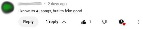 Things like ‘fake music’ or ‘garbage’. I like and love all of them and reply to the negative ones that I know AI can be polarizing to be a part of but my hope is that people will hear ‘the song’ and get past ‘how it’s made’.